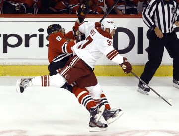 The hit speaks for itself, but there is still certainly more to say after a disgusting illegal hit leaves Chicago Blackhawk, Marian Hossa, carted off the ice on a stretcher, and his (I’m going to say attacker) attacker, Phoenix Coyote, Raffi Torres, on the bench and on the ice for the rest of regulation.